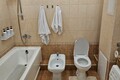 Все комнаты в квартире изолированы, что позволит вам не беспокоить других жильцов, если вы встанете рано утром. Ванная комната и туалет совмещены, но при этом достаточно просторны. В них есть всё необходимое: ванна, туалет, биде, раковина и стиральная машина. Несмотря на это, в ванной остаётся ещё много места.
